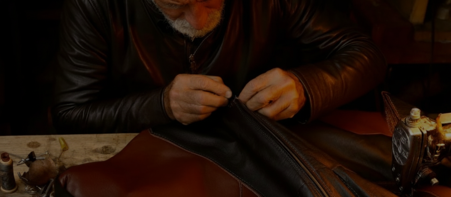 BLAZER WITH AGED BROWN LEATHER IN CLASSIC CUT
